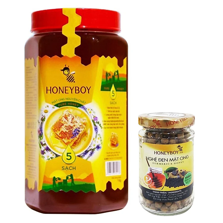Combo Thực Phẩm Chức Năng Mật Ong Thiên Nhiên 5 Sạch Honeyboy (1kg) + Thực Phẩm Chức Năng Nghệ Đen Mật Ong Honeyboy (80g) - Mật ong thiên nhiên là sản phẩm kết tinh từ một quá trình làm việc chăm chỉ và cần mẫn của hàng ngàn chú ong thợ. Nghệ mật ong thực sự là bài thuốc bổ dưỡng để cải thiện tình hình sức khỏe đặc biệt dành cho những bệnh nhân viêm loét dạ dày.