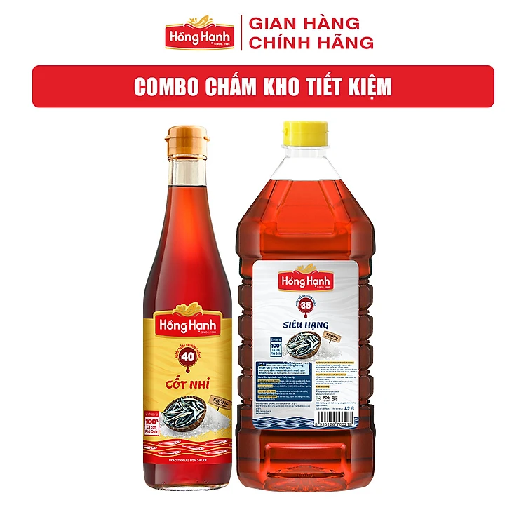 [COMBO TIẾT KIỆM] Nước mắm truyền thống Phú Quốc Hồng Hạnh Cốt Nhỉ 40 độ đạm 500ml + Siêu Hạng 35 độ đạm 1,9 lít.