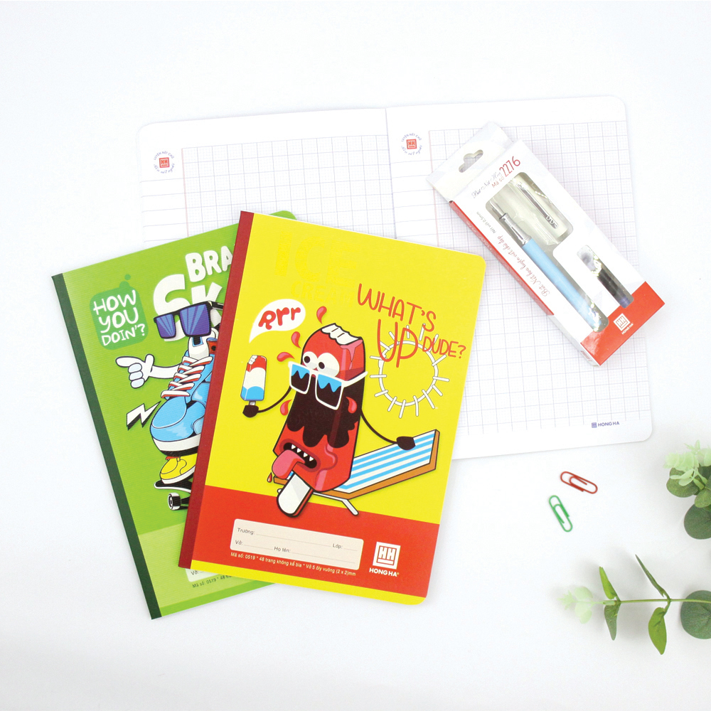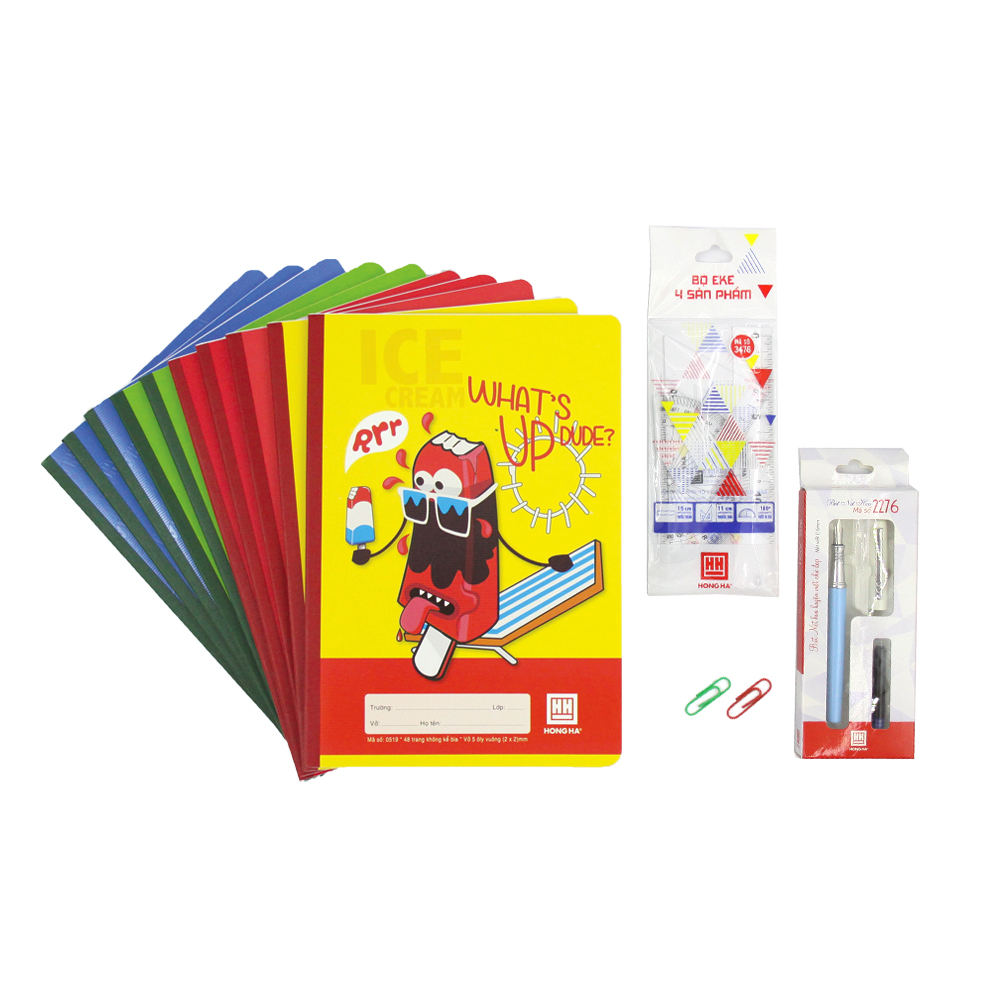 Combo Tiểu học "Trạng nguyên" - 10 Vở Hồng Hà 5 ô ly Cool, Eke & Bút máy nét hoa - Tặng hộp 6 ống mực tím (giao màu ngẫu nhiên)