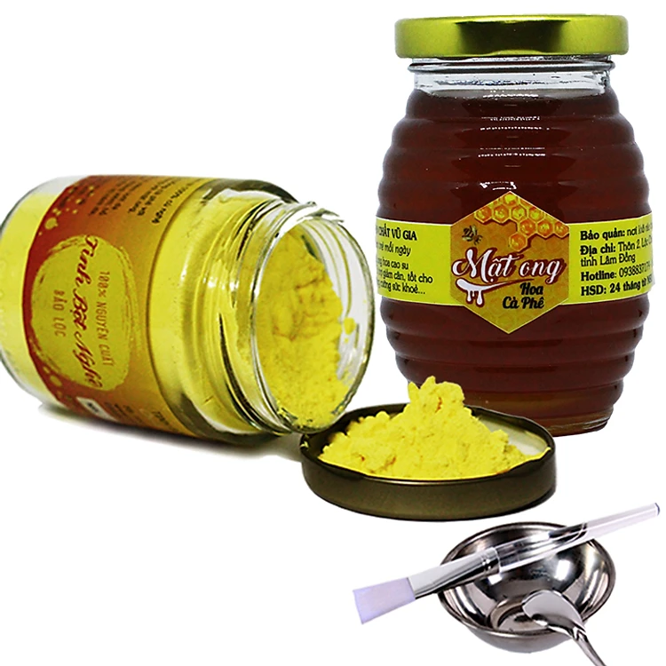 Combo Tinh Bột Nghệ + Mật Ong Hoa Cà Phê - Nguyên Chất Bảo Lộc Vũ Gia (100gr/ml/hũ) + Tặng Bộ Đắp Mặt Nạ Inox Cao Cấp
