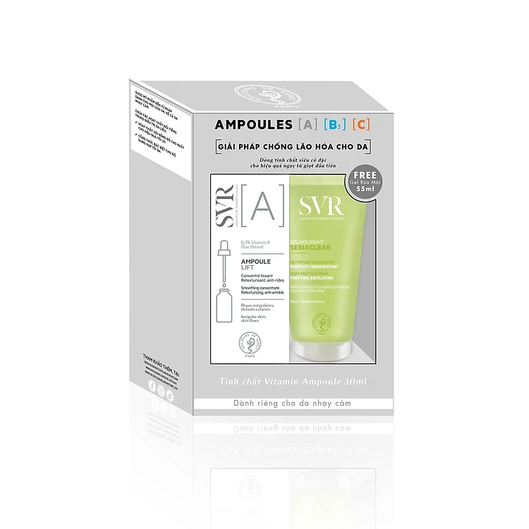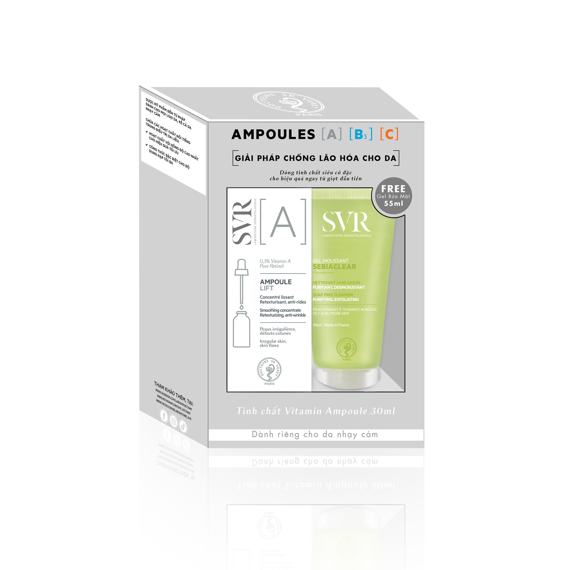 Combo Tinh chất SVR [A] Ampoule Lift 30ml và Rửa mặt SVR Sebiaclear Gel Moussant 55ml giúp làm mịn da nhiều khuyết điểm