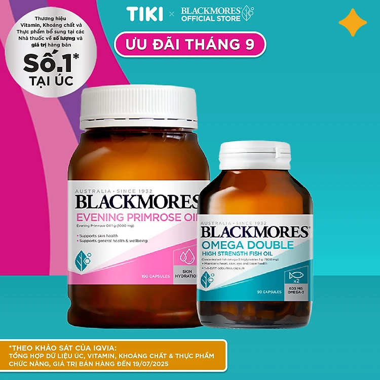 Combo Tinh Dầu Hoa Anh Thảo Hỗ Trợ Cân Bằng Nội Tiết Tố Blackmores Evening Primrose Oil Lọ 190 Viên và Viên Uống Dầu Cá Bổ Sung Omega Hỗ Trợ Cho Tim, Mắt và Da Blackmores Double Omega High Strength Lọ 90 Viên