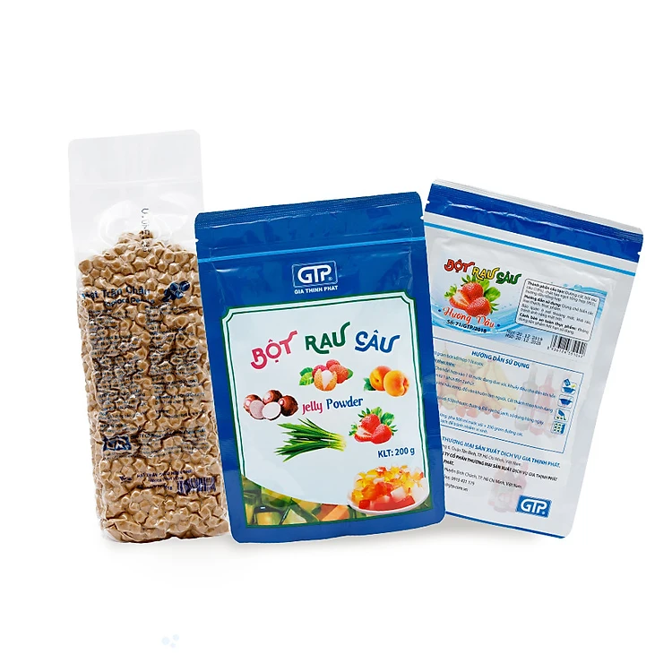 Combo Topping Trà sữa trân châu GTP (trân châu, thạch jelly truyền thống, thạch jelly dâu)