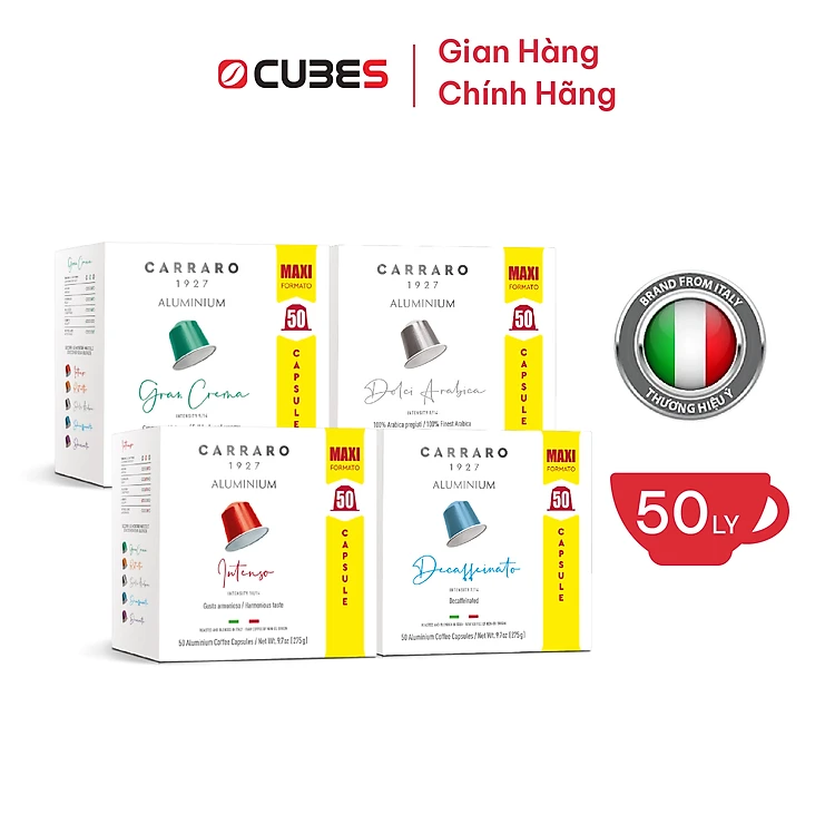 Cà phê viên nén Ý Carraro Gourmet tương thích Nespresso 50v/hộp