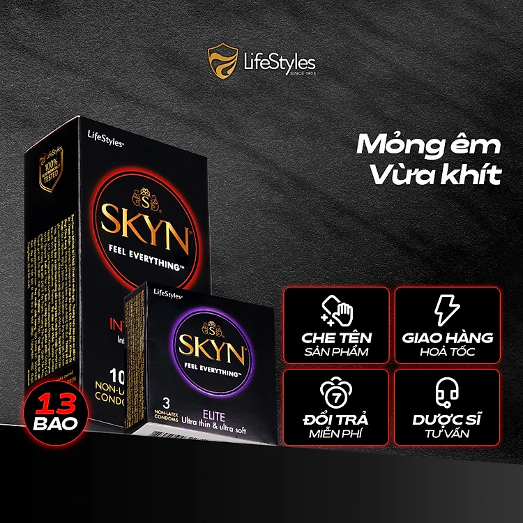 Combo Trải Nghiệm Đẳng Cấp - Bao cao su Lifestyles Skyn Intense Nonlatex 10 bao + 1 Bao cao su SKYN Elite 3 bao