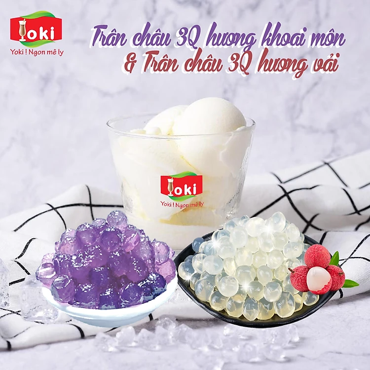 Combo Trân châu 3Q hương khoai môn Yoki và Trân châu 3Q hương vải Yoki