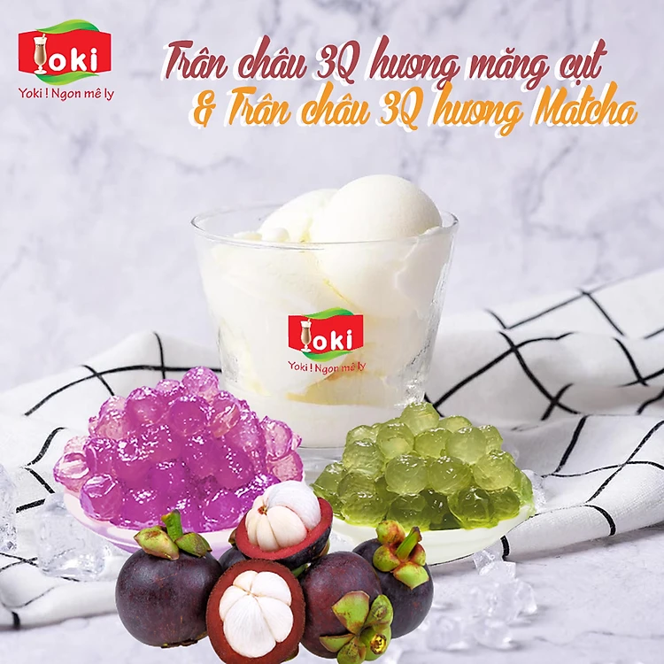 Combo Trân châu 3Q hương măng cụt Yoki và Trân châu 3Q hương Matcha Yoki