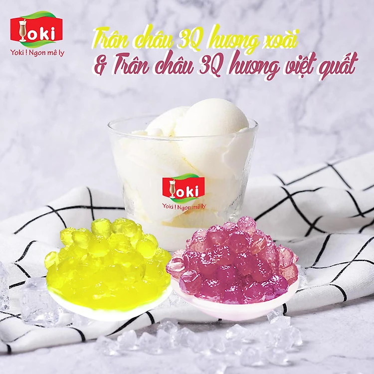 Combo Trân châu 3Q hương xoài Yoki và Trân châu 3Q hương việt quất Yoki