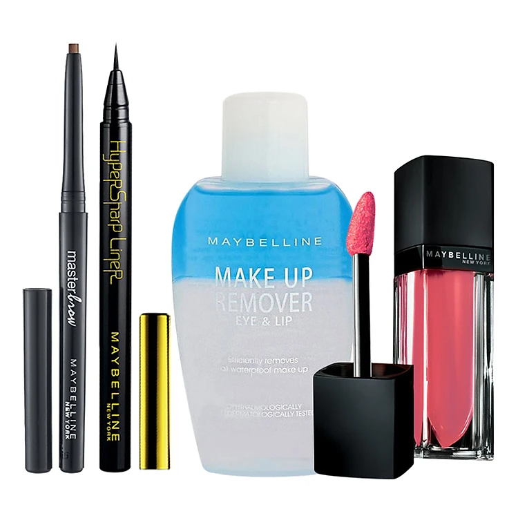 Combo Trang Điểm Maybelline: Kẻ Mắt Nước + Chì Kẻ Mày + Nước Tẩy Trang Mắt Môi + Son Kem Lì - Kẻ mắt nước sẽ giúp bạn có đôi mắt sâu đầy quyến rũ. Đầu cọ được thiết cực mảnh giúp đường viền mắt chuẩn xác và sắc nét. Chì kẻ mày được thiết kế đầu kẻ dạng chì mềm mại, dễ sử dụng. Đầu chì mềm giúp việc kẻ dễ dàng, không gây đau khi sử dụng cho đường kẻ long lanh, sắc nét. Nước tẩy trang giúp làm sạch mọi lớp trang điểm mà không gây rát hay kích ứng da. Son với kế cấu dạng kem nhẹ nhàng và mượt mà như nhung, dễ dàng phủ đều màu son lên môi của bạn như trải lụa, không bị nếp gấp của môi sau nhiều giờ liền.