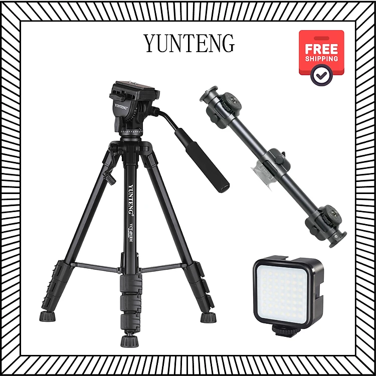 Combo Tripod Yunteng VCT 691 + Thanh Ngang 369 Kèm Đèn RGB - Phụ kiện hỗ trợ quay chụp sản phẩm - Hàng chính hãng