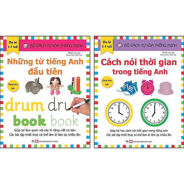 Combo Trọn Bộ 2 Cuốn: Bộ Sách Tự Xóa Thông Minh - Những Từ Tiếng Anh Đầu Tiên + Cách Nói Thời Gian Trong Tiếng Anh ( 5 -7 tuổi ) - Tặng Bút Xóa