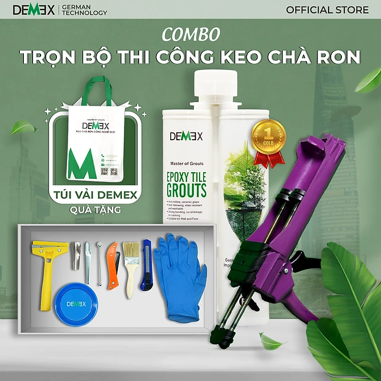 Combo Trọn Bộ Thi Công Keo Chà Ron DEMEX - Keo Epoxy 2 Thành Phần - Súng Bơm Keo Chà Ron DEMEX
