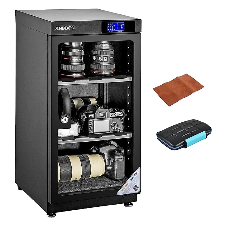 Tủ Chống Ẩm Andbon AD-50C là một công cụ được thiết kế để bảo quản cho những thiết bị của bạn được an toàn dưới những tác nhân của môi trường ẩm ướt của chúng ta như nước, bụi và độ ẩm. Thiết bị có khả năng hút ẩm nhanh, bảo quản cho máy ảnh, máy quay phim và những vật dụng khác của bạn được an toàn trước khi bị ảnh hưởng do nước, bụi, và độ ẩm gây ra. Toàn bộ tủ được sơn hai lớp bằng sơn tĩnh điện màu đen bền bỉ, chắc chắn và không kém phần nổi bật.