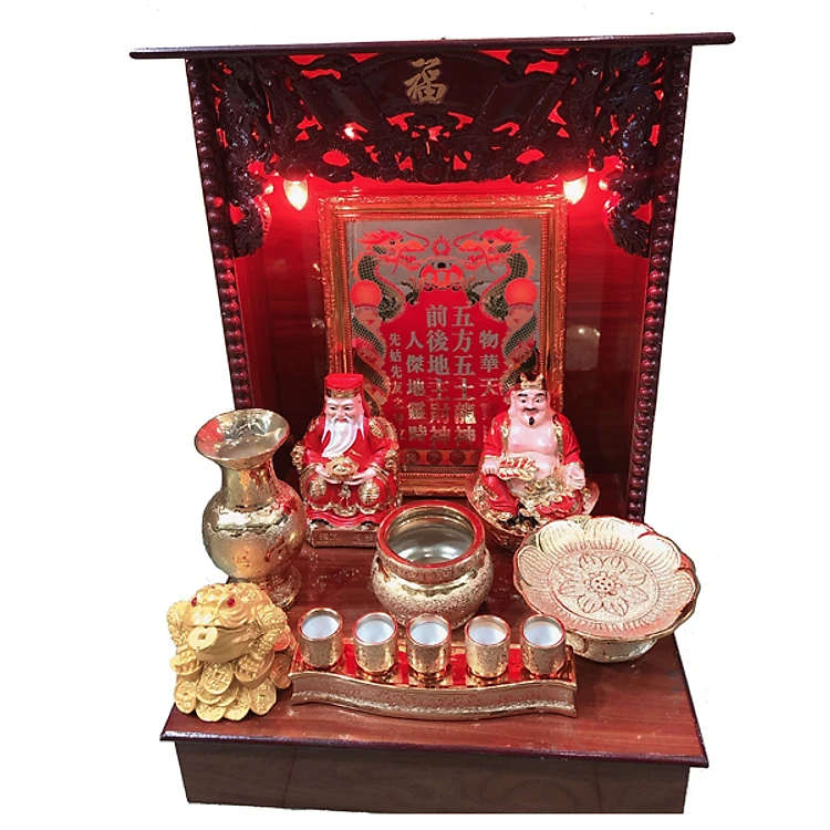 Người xưa tin rằng, Thần Tài chính là vị thần chuyên quản tài lộc trong thiên hạ. Vì vậy, nếu được sự chiếu cố của ông thì đường công danh rộng mở, giàu sang phú quý tự động đi vào nhà. Chính vì vậy, bên cạnh thờ Thổ Địa – thần canh quản đất đai nơi ở, thì người ta còn thường thờ Thần Tài kế bên. Trước mặt bàn thờ phải quang đãng, sạch sẽ.– Nếu có thờ thần Cóc (Thiềm Thừ), tốt nhất là nên đặt chéo với cửa ra vào,  ban ngày nên xoay thần Cóc ra ngoài, nhưng ban đêm thì quay vào bên trong). Tủ có thêm hộc kéo thêm 20cm nên rất tiện lại cho việc thờ cúng