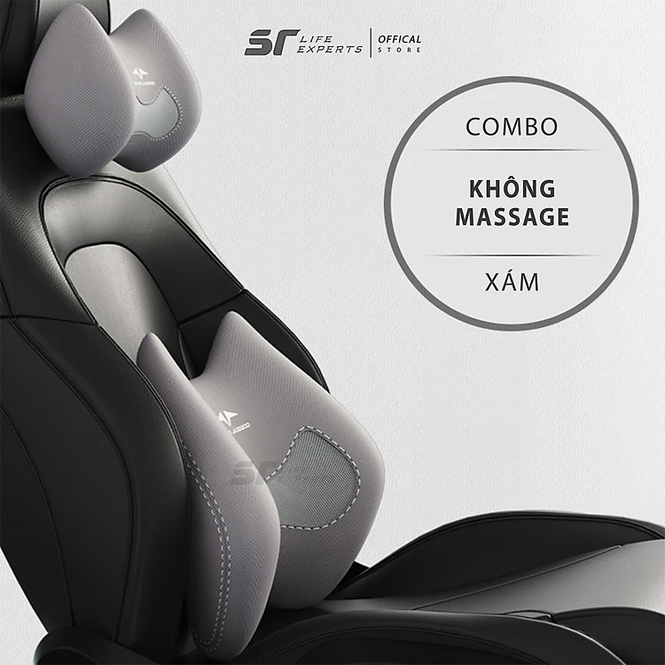 Combo Tựa Đầu Và Tựa Lưng Ô Tô Túi Khí Kéo Dãn Massage Chườm Nóng, Gối Cao Su Non, Giảm Mỏi Cổ Vai Cột Sống - Sairui