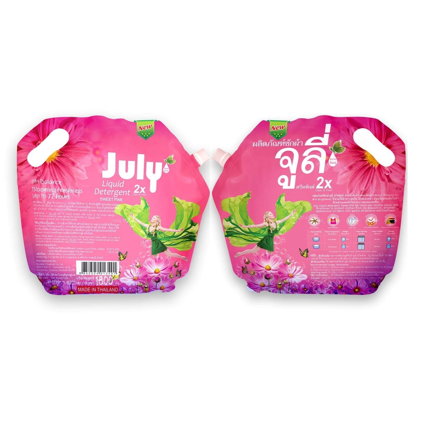 Hòa 15 – 30ml nước giặt July 2x vào 10 lít nước (Khoảng 05-10 bộ quần áo). Ngâm 10-15 phút trước khi giặt, xả sạch với nước, sau đó phơi khô.