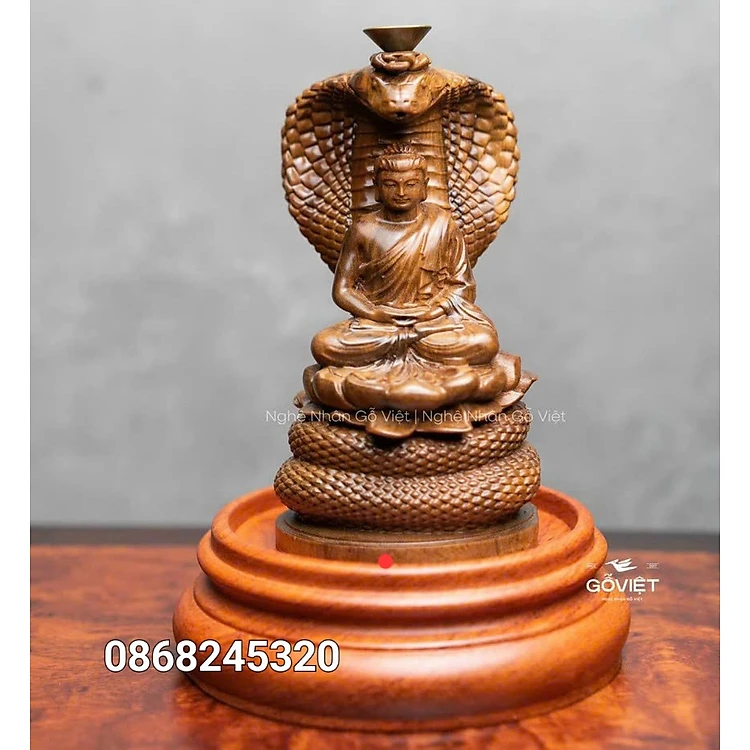 Combo tượng rắn thần bảo vệ đức phật gỗ bách xanh kt 15×9×9cm ,chưa tính kệ đế gỗ hương