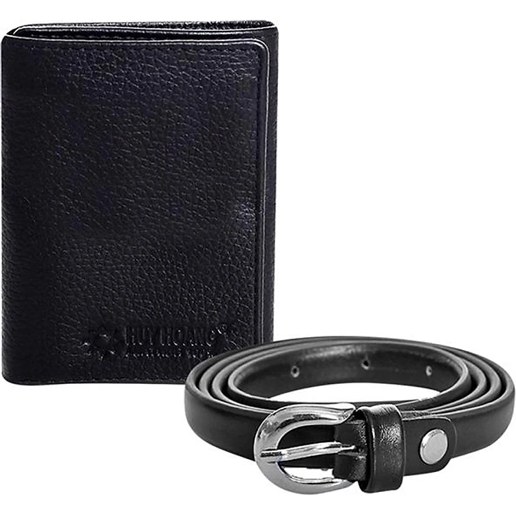 Combo Ví Và Thắt Lưng Nữ Huy Hoàng HT3137-HT5110 (12.6 x 16.6 cm) - Đen