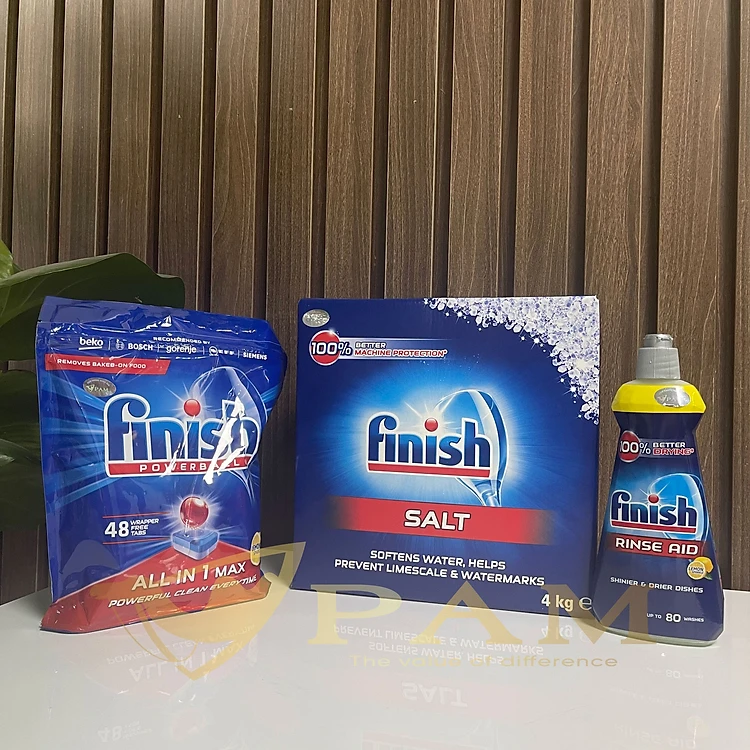 Combo Viên rửa bát Finish All in 1 max 48 viên hương chanh + Muối Finish 4kg + Nước làm bóng Finish 400ml hương chanh