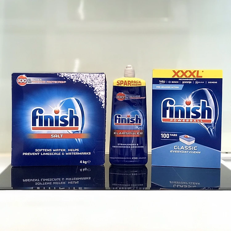 Combo Viên rửa bát Finish Classic 100 viên + Muối Finish 4.0kg + Nước làm bóng Finish 1150ml