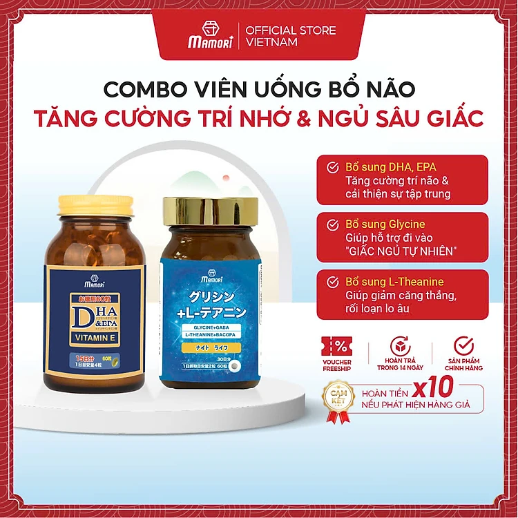 Combo Viên Uống Mamori DHA-EPA và Glycine L-theanine Giúp Tăng Cường Trí Nhớ, Cải Thiện Giấc Ngủ sâu, thư giãn