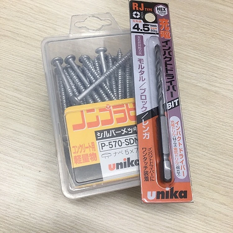 Combo Vít bê tông 5mm đầu dù P570 & Mũi khoan tường 4.5mm đuôi lục giác Unika (không cần dùng tắc kê nhựa)