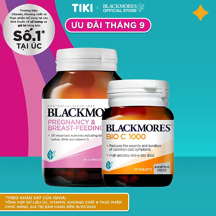 Combo Vitamin Tổng Hợp Cho Bà Bầu và Mẹ Cho Con Bú Blackmores Pregnancy & Breast-Feeding Gold Lọ 60 Viên và Viên Uống Bổ Sung Vitamin C Blackmores Bio C 1000mg Lọ 31 Viên