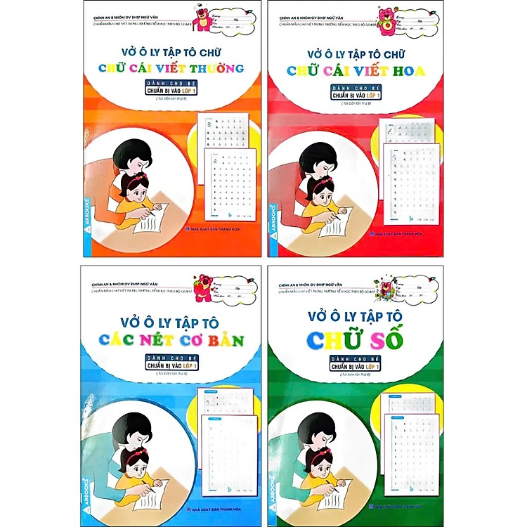 Combo Vở Ô Ly Tập Tô - Dành Cho Bé Chuẩn Bị Vào Lớp 1: Chữ Số, Các Nét Cơ Bản, Chữ Cái Viết Thường, Chữ Cái Viết Hoa (Bộ 4 Cuốn)_ABB