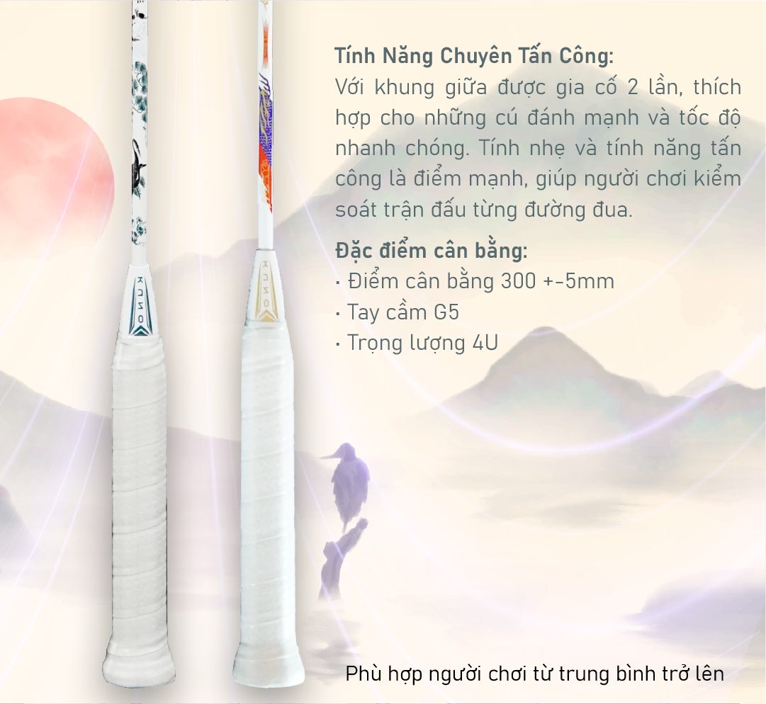 2. Tính Năng Chuyên Tấn Công: Với khung giữa được gia cố 2 lần, KUNO HẠC THẦN LIMITED và KUNO KÌ LÂN LIMITED thích hợp cho những cú đánh mạnh và tốc độ nhanh chóng. Tính nhẹ và tính năng tấn công của chúng là điểm mạnh, giúp người chơi kiểm soát trận đấu từng đường đua.