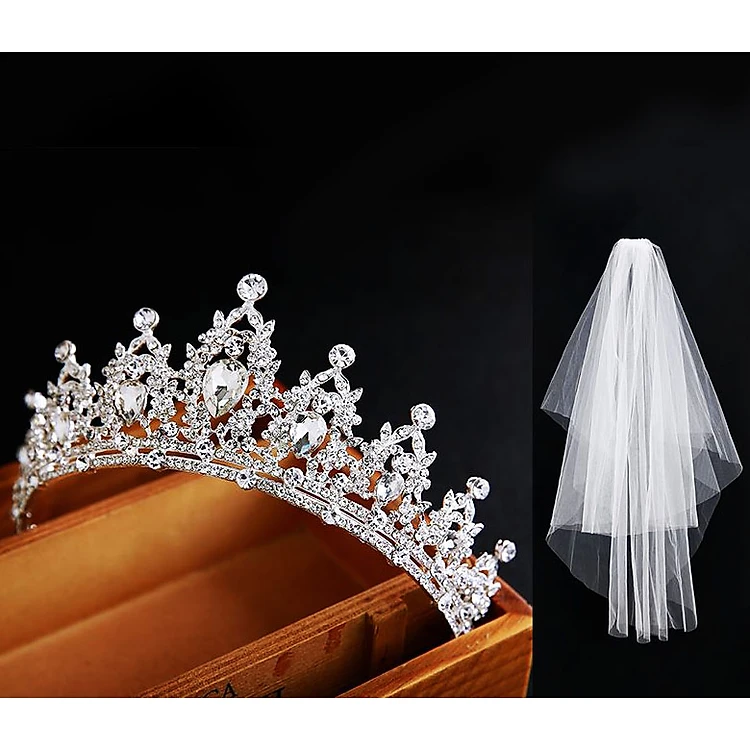 Combo vương miện đính đá cô dâu và lúp voan cài tóc trắng tinh khôi