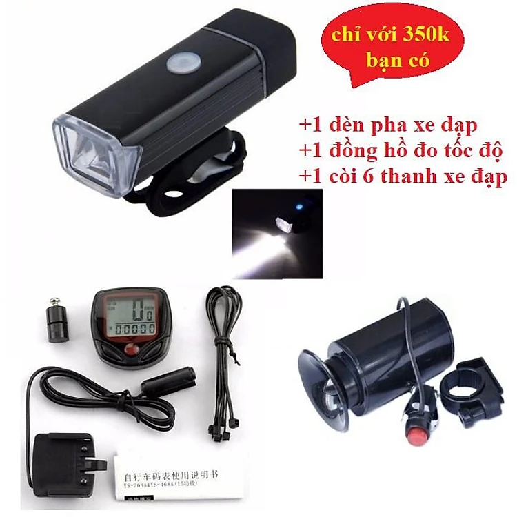 Combo xe đạp Đồng hồ đo tốc độ xe đạp + Đèn pha xe đạp + còi xe đạp