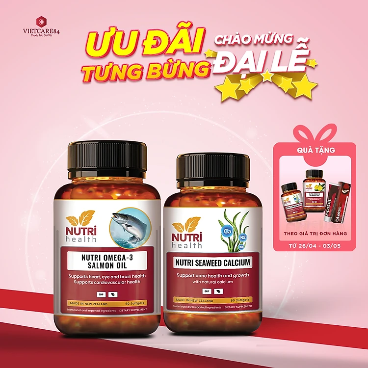 COMBO XƯƠNG KHỚP: Nutri Omega 3 Salmon Oil 60 Viên+ Canxi hữu cơ Nutri Seaweed Calcium 60 Viên | Giúp Phục Hồi, Bảo Vệ Xương