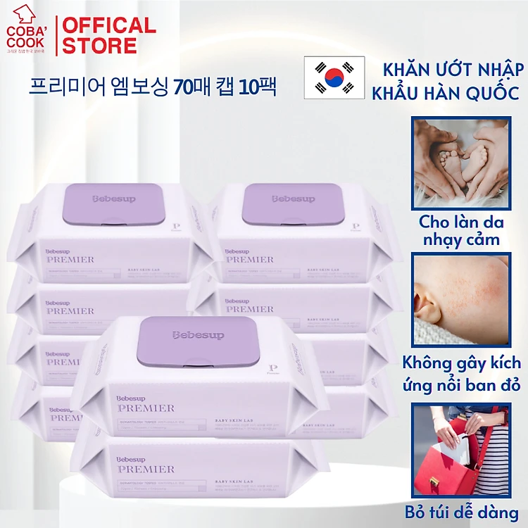 Combo10 Gói Khăn Ướt Primier 70 Tờ/Gói Hàn Quốc Thương Hiệu Bebesup