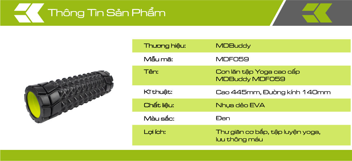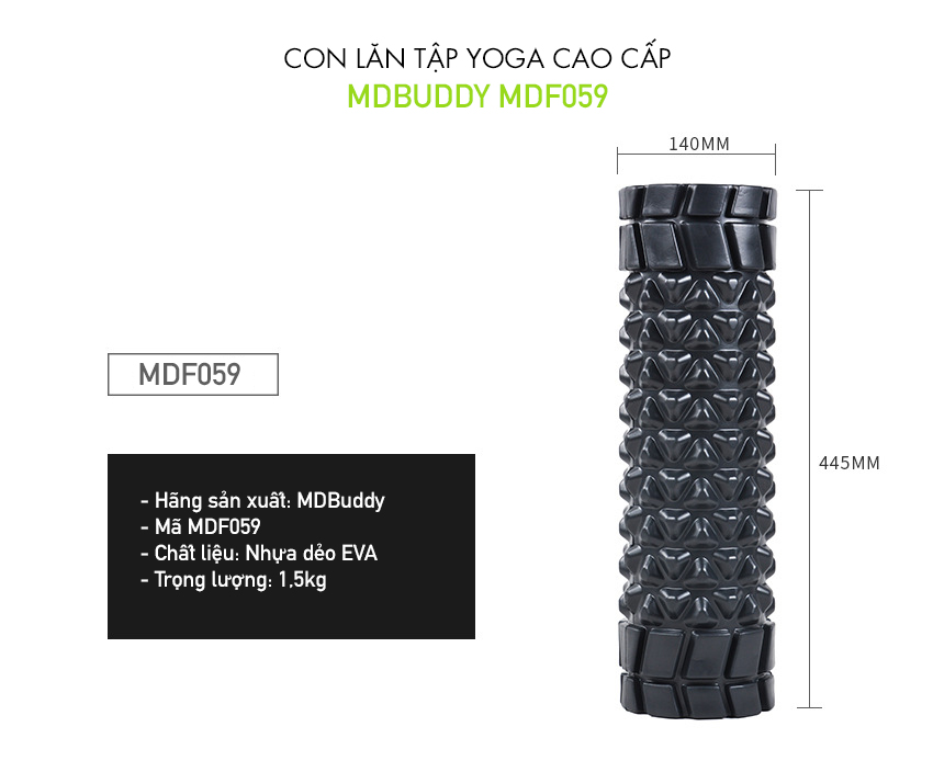 Con lăn YOGA MDBuddy MDF059 hay còn gọi là Foam giãn cơ được ứng dụng linh hoạt trong các bài tập Yoga hoặc sử dụng để thư giãn cơ bắp sau khi tập gym. Bạn không cần dùng đến các thiết bị cồng kềnh để tập luyện hoặc mua sắm những loại máy massage đắt đỏ mà vẫn có thể chăm sóc sức khỏe tốt nhất nhờ con lăn MDF059 này.