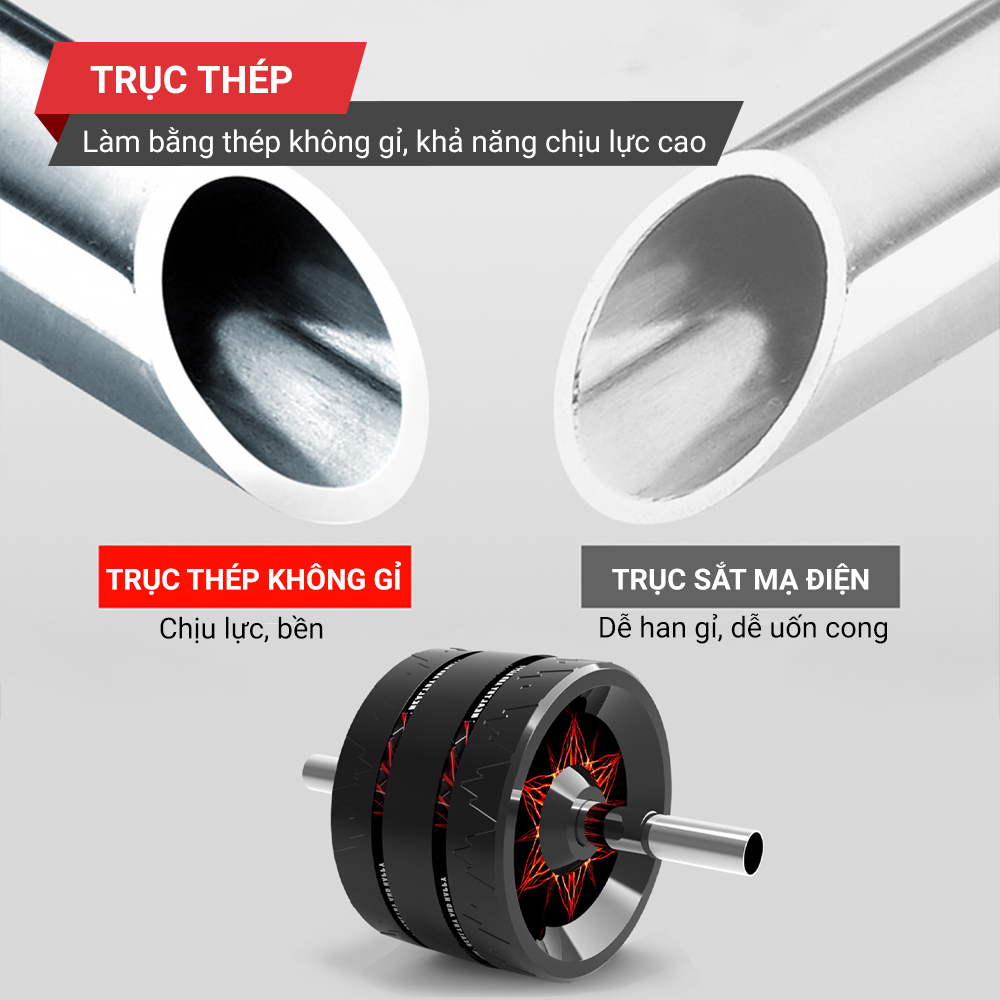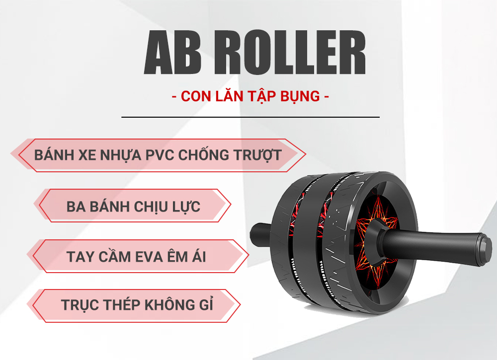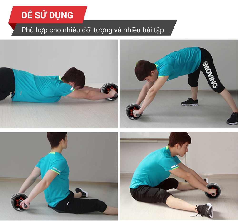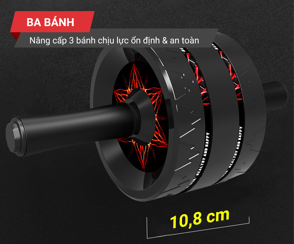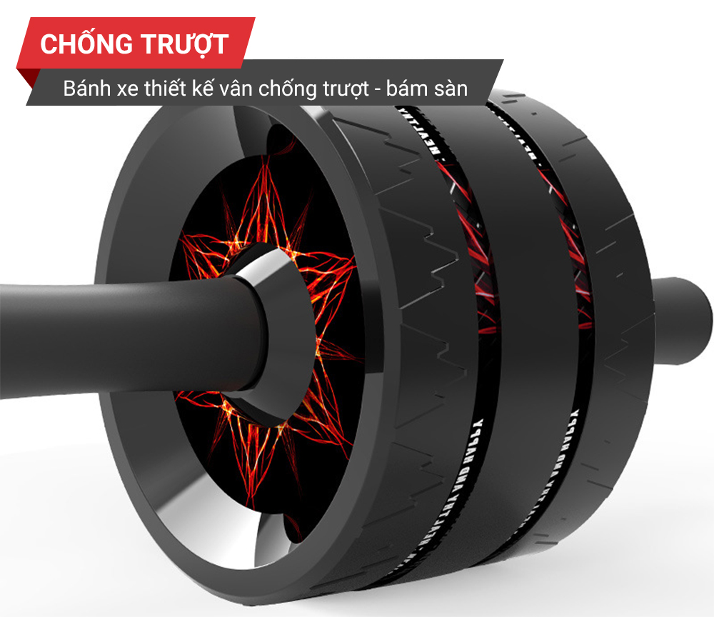 Hệ thống 3 bánh xe tạo thế cân bằng trong khi tập luyện. Bạn có thể dễ dàng kiểm soát hướng đi của con lăn, chuyển động không hạn chế cho những bài tập bụng từ cơ bản tới nâng cao. Bánh xe đươc thiết kế vân chìm bám sàn và hoàn toàn chống trơn trượt.
