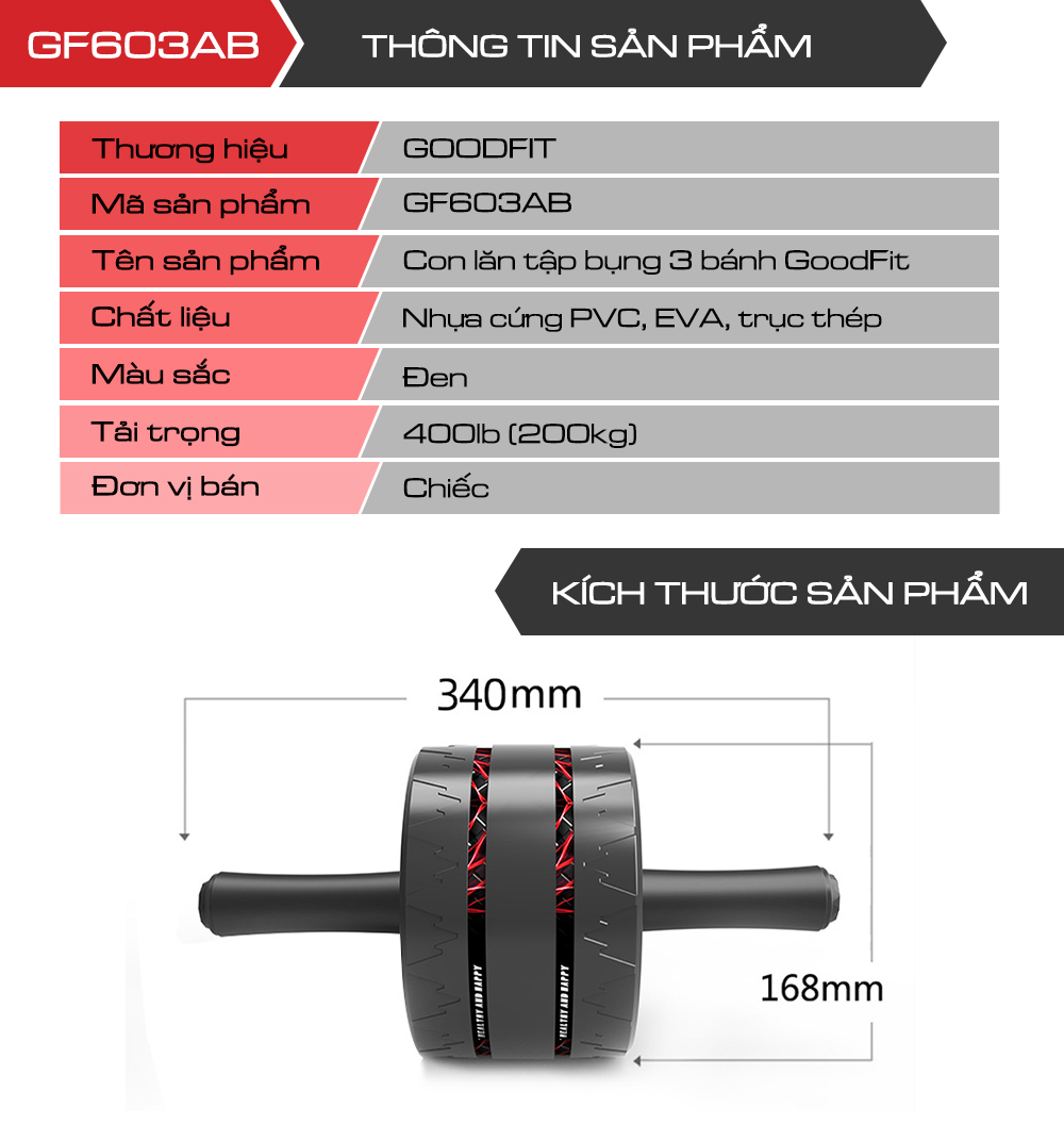 Dành 15 phút mỗi ngày và bạn có 1 thân hình lý tưởng sau 1 tháng? Bạn có muốn nhanh chóng đốt cháy calo mà không tốn nhiều công sức? Giải pháp hiệu quả là tập luyện cùng con lăn tập bụng 3 bánh GoodFit GF603AB. Nó được thiết kế với cấu trúc cơ học tối ưu, trọng lượng nhẹ cùng khả năng chịu tải tốt, là dụng cụ lý tưởng để tập luyện tại nhà.