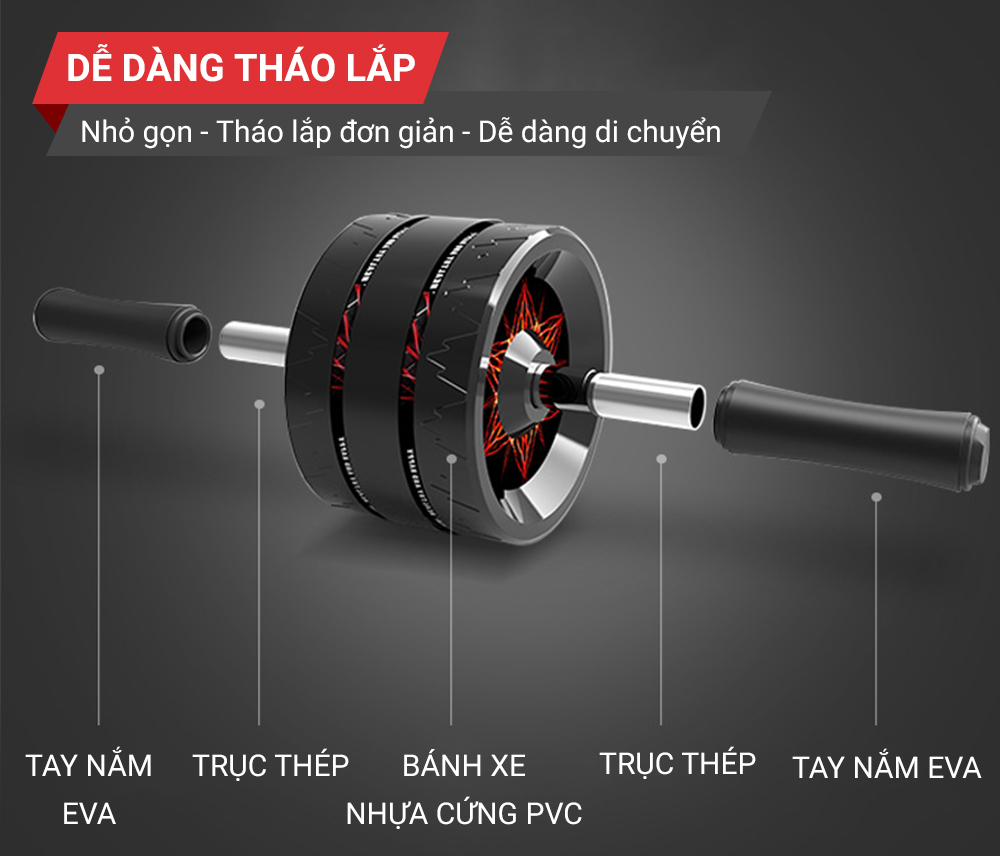 Các chi tiết của con lăn dễ dàng tháo rời và lắp ráp. Bạn có thể mang con lăn di động để tập luyện khắp muôn nơi: tại nhà, công sở, phòng Gym, đi du lịch,…mà con lăn tập bụng chỉ chiếm không gian rất nhỏ trong balo, vali.