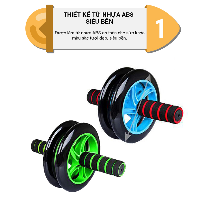 – Con lăn tập bụng AB Wheel được thiết kế từ nhựa ABS chịu lực siêu bền và bánh xe bọc PVC tăng cường độ ma sát, bám tốt hơn.