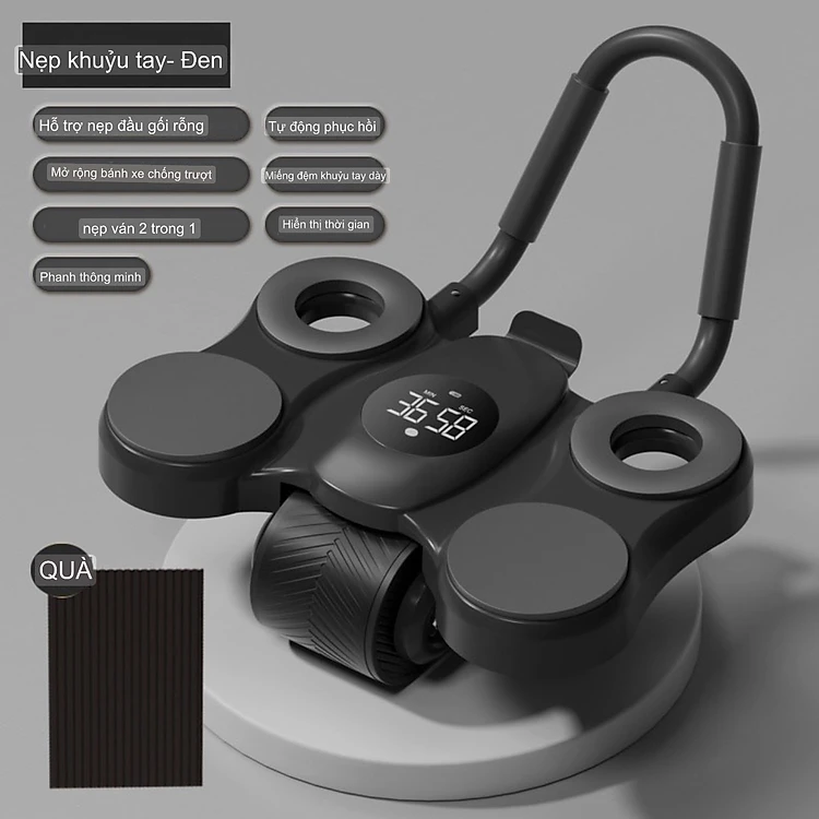 Con lăn tập bụng - Dụng cụ tập gym tại nhà thế hệ mới 2 bánh có chỗ để tay tiện dụng, tặng miếng thảm+ Cáp Sạc