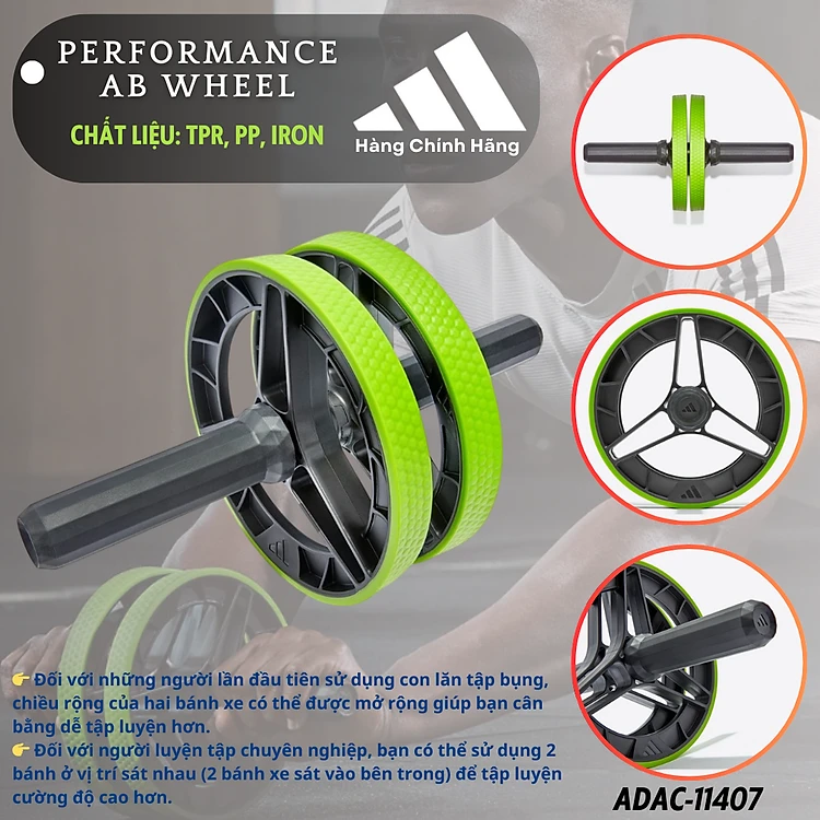 Con Lăn Tập Cơ Bụng, Bánh Xe Đẩy ADIDAS ADAC-11407 Performance AB Wheel (1 Cái) - Hàng Chính Hãng