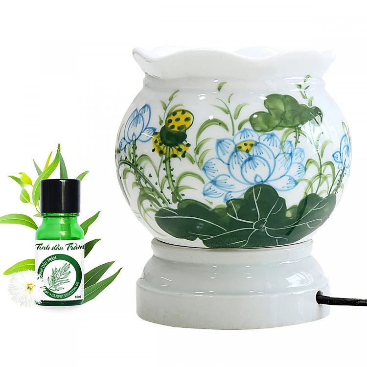 • Đèn xông tinh dầu bằng điện gồm: Thân đèn, bóng đèn và đĩa đựng tinh dầu. Đèn hoàn toàn được làm bằng gốm sứ thấu quang Bát Tràng, đem đến ánh sáng dịu nhẹ, thư giản cho người dùng