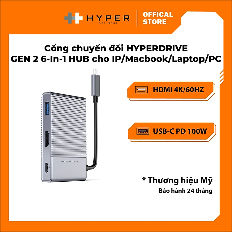 CỔNG CHUYỂN Hyper HyperDrive GEN2 6-IN-1 FOR MACBOOK, IPAD PRO 2018-2020, PC & DEVICES - Hàng chính hãng