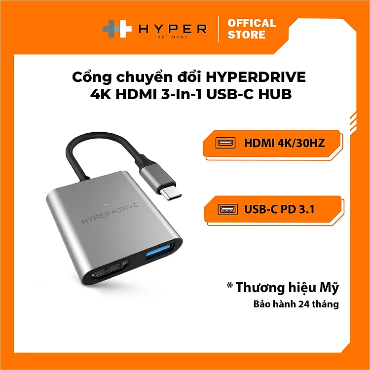 CỔNG CHUYỂN HYPERDRIVE 4K HDMI 3-IN-1 USB-C HUB FOR MACBOOK, SURFACE, PC & DEVICES – HD259A - HÀNG CHÍNH HÃNG
