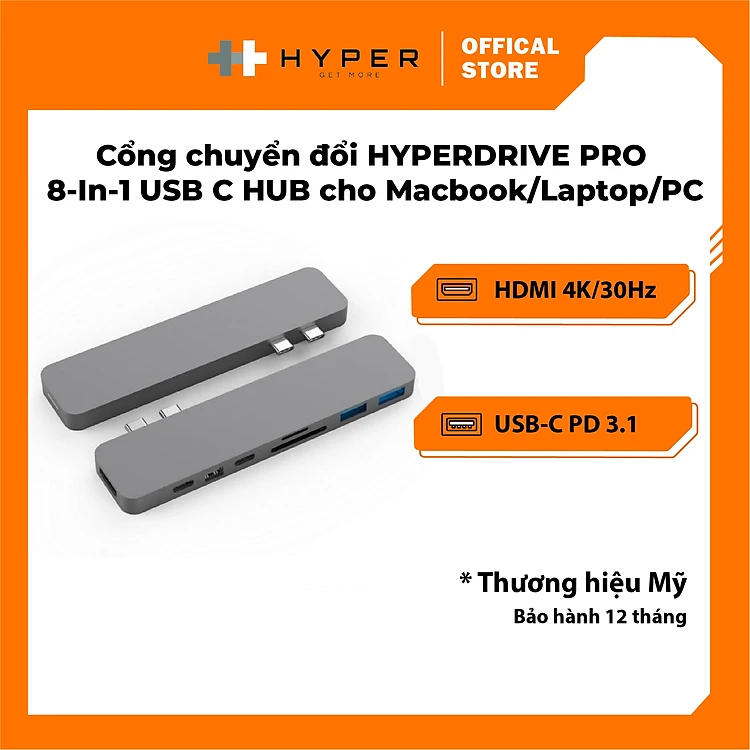 CỔNG CHUYỂN HYPERDRIVE PRO 8-IN-2 HUB FOR MACBOOK PRO/AIR USB-C – GN28D - HÀNG CHÍNH HÃNG