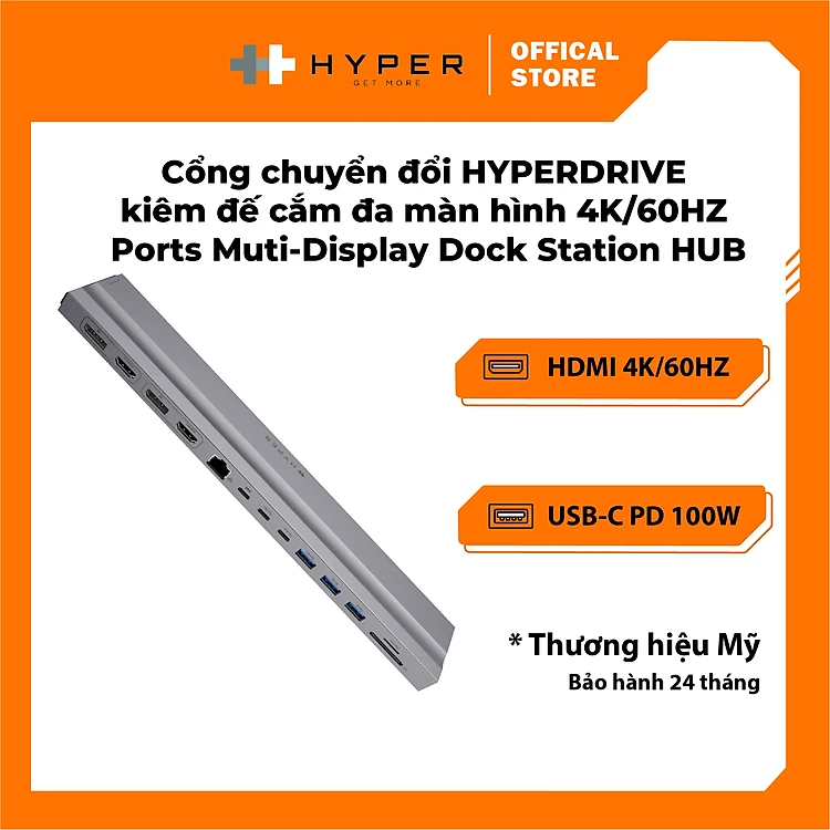 CỔNG CHUYỂN KIÊM ĐẾ CẮM ĐA MÀN HÌNH HYPERDRIVE 4K60HZ 13 PORTS MULTI-DISPLAY DOCK STATION HD134 - Hàng chính hãng
