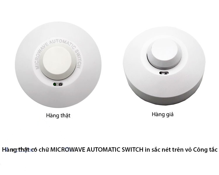 Từ tháng 04/2017 nhà sản xuất thay đổi mẫu mã để phân biệt hàng thật và hàng giả trên thị trường. Công tắc cảm biến chuyển động radar lắp trần nổi MS600 thật được bắn chữ MICROWAVE AUTOMATIC SWITCH sắc nét trên vỏ mặt công tắc.
