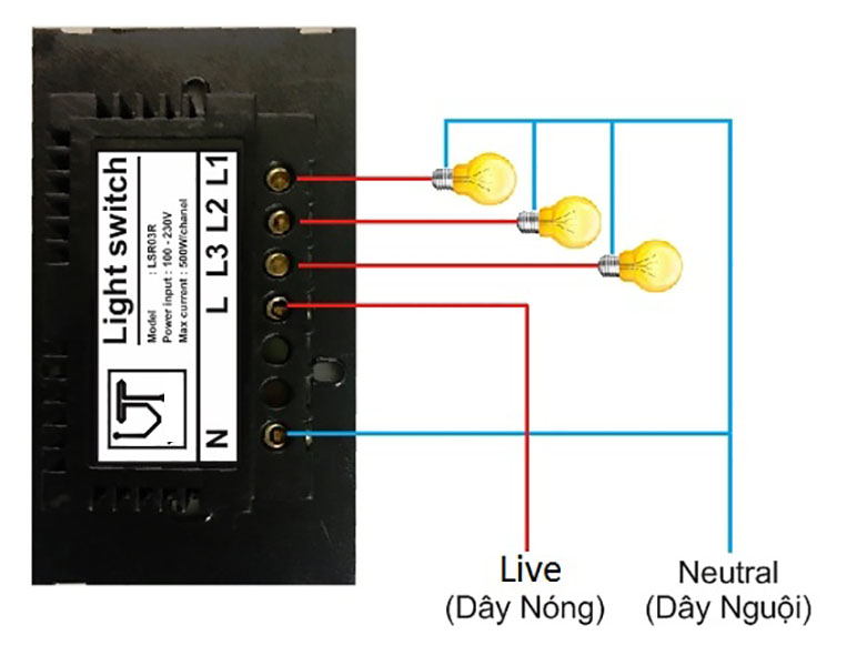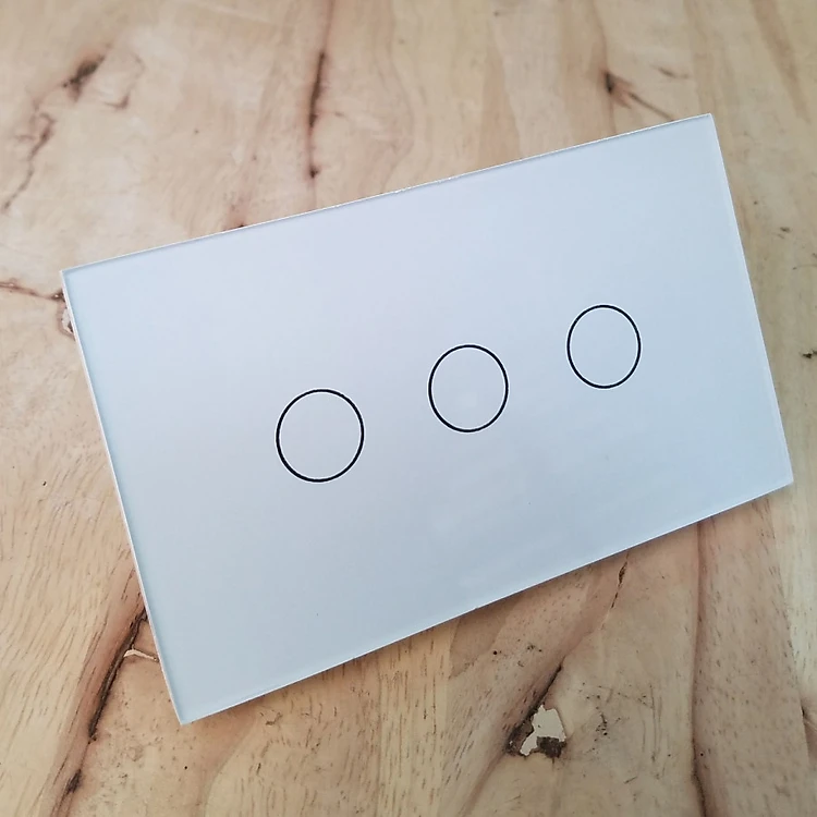 - Công tắc điều khiển ba tiếp điểm bằng cảm ứng chạm, dùng để bật tắt thiệt bị điện như: đèn, quạt, trong nhà.