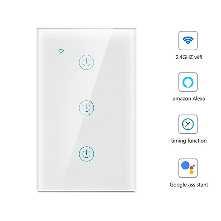 Công tắc cảm ứng Wifi thông minh 3 chạm HCN - màu trắng - Hàng nhập khẩu