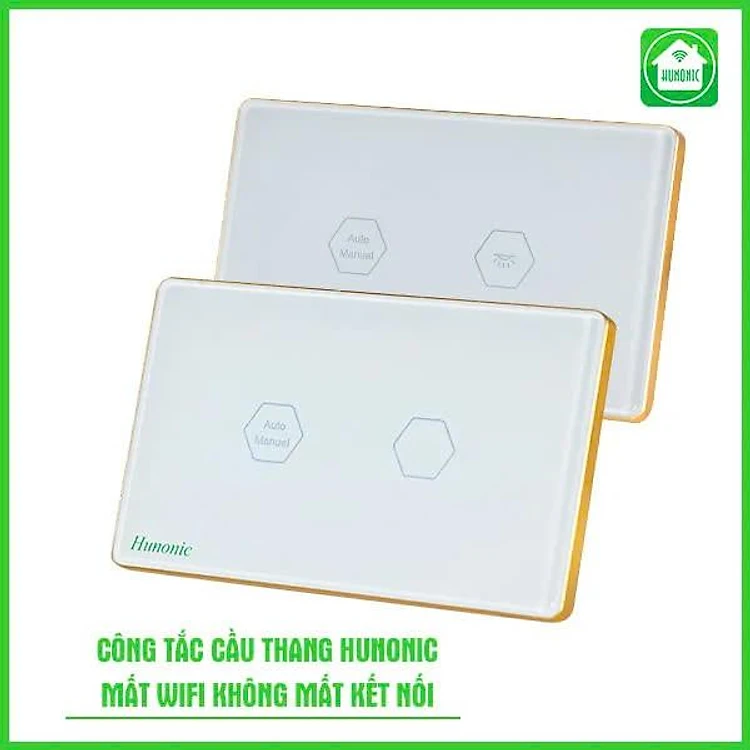 Công Tắc Cầu Thang Wifi Hunonic Viền Vàng Liên Kết Đảo Chiều Không Cần Mạng Internet