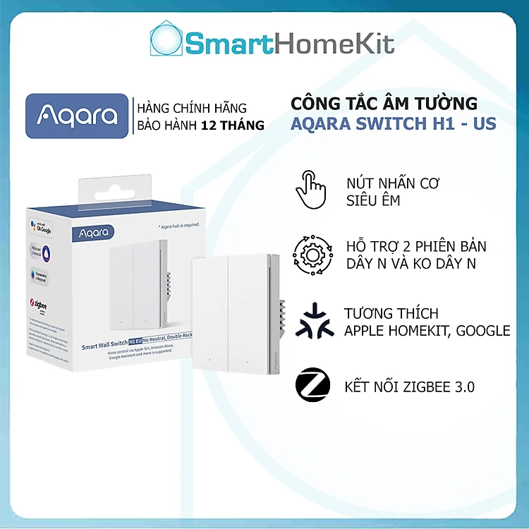 Công tắc thông minh Aqara H1 Smart Switch Zigbee 3.0 Đế Vuông Chuẩn US/UK/VN - Hàng Chính Hãng